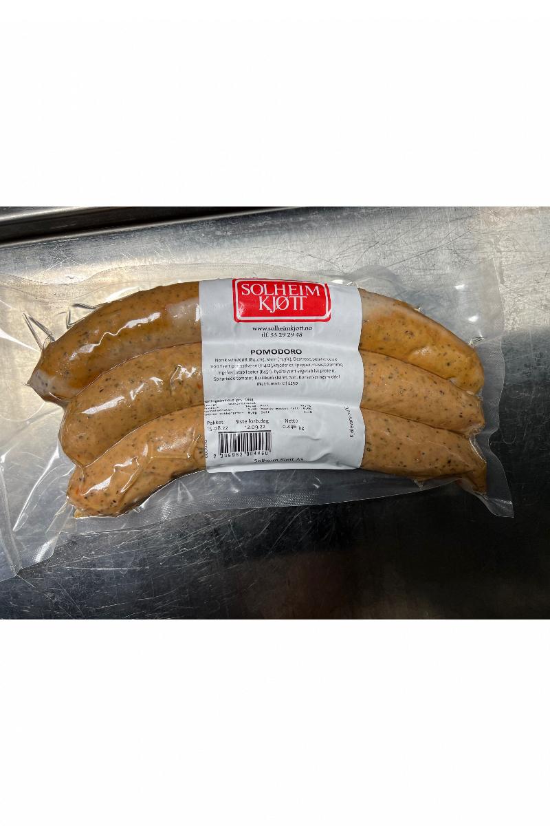 POMODORO – SOLTØRKET TOMAT – BASILIKUM - 3 pk á 150g pølse
